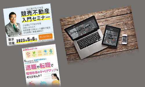 【制作実績】 ■バナー 競売不動産セミナー ■LP 転職サイト ■HP Coming Soon